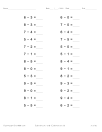 Free and printable math sheets for subtraction of numbers between six and nine to zero and five